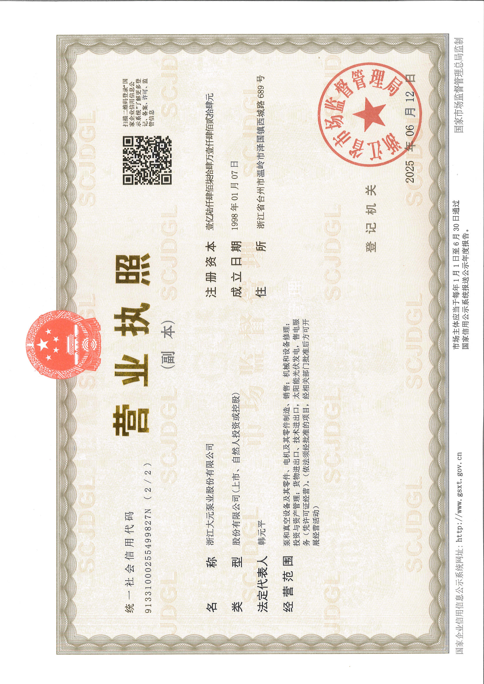 浙江大元泵业股份有限公司